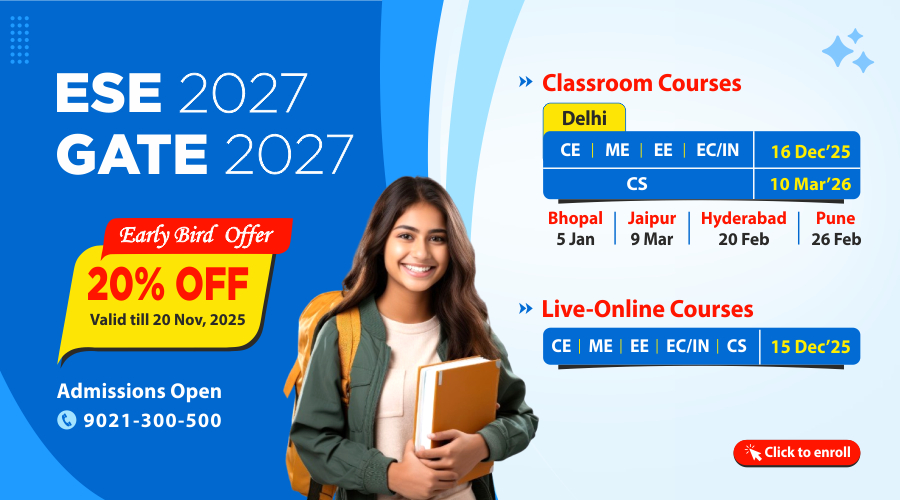 MADE EASY Prime announces ESE + GATE 2026 Live-online course. It is the most comprehensive and well-structured Course for ESE + GATE 2026...