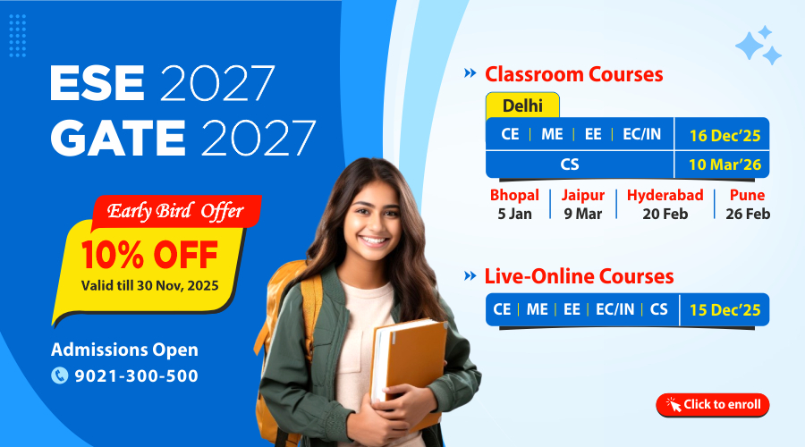 MADE EASY Prime announces ESE + GATE 2026 Live-online course. It is the most comprehensive and well-structured Course for ESE + GATE 2026...
